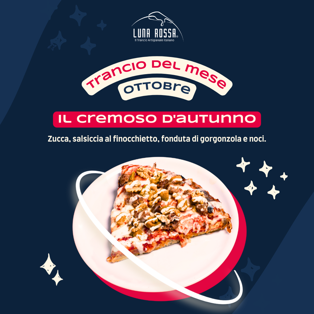 Questo mese, il Trancio IL CREMOSO D’AUTUNNO ti aspetta da Luna Rossa nel locale di Cormano e in quello di Bovisio Masciago!